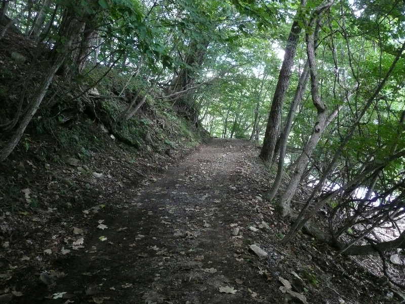音が聞こえたので振り返ったら、若い女性が走ってきた。小さなザックを背負い、挨拶を残して駆け抜けていく。あのまま走って中禅寺湖を一周するのだろうか。元気なものだ。阿世潟の手前の浜から男体山と上野島