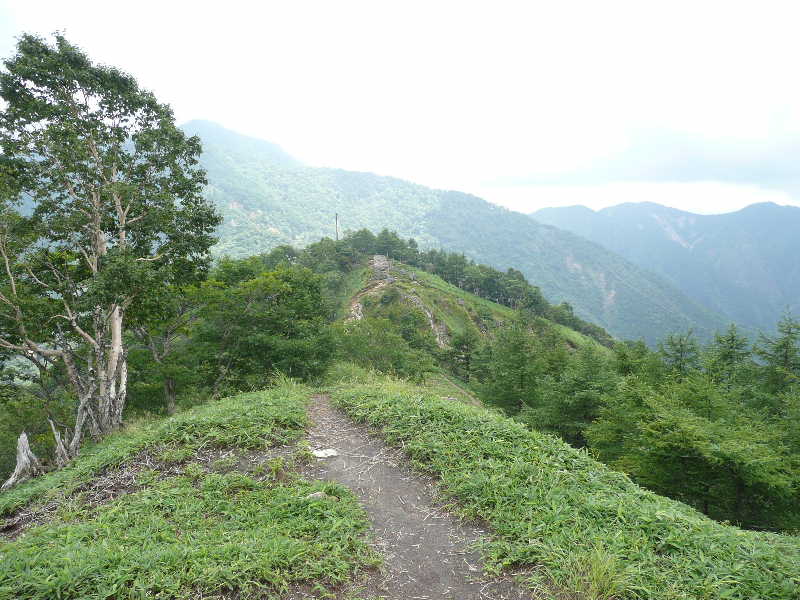 振り返ると、さっき通過してきた雨量計のピークと痩せ尾根が少し見える