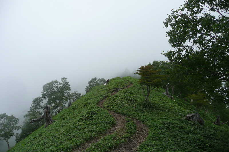 霞んでしまって残念。「急坂を登って、絶景ポイント。少し緩くなってまた偽ピーク目指して急登」という繰り返し。次の偽ピークだ