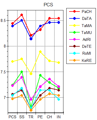 パトチャン、髙橋君ほとんど重なっている。転倒があるのにPEは髙橋君の方がちょっとだけ高い。町田君はPEが高い。無良君はちょっと、TRが低い。