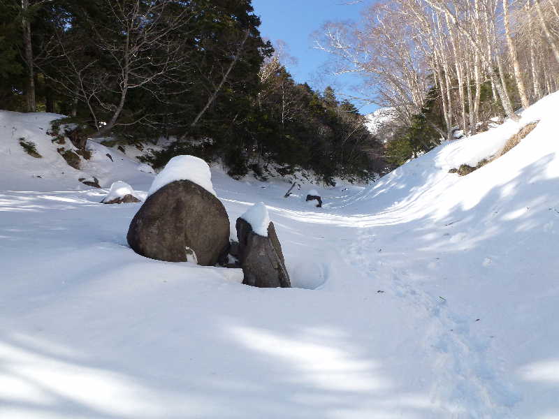 湯元からの金精沢コースは雪は少ないですが、スノーシューをするには十分でとても楽しめます。コース終点を越えてさらに登ると、少し踏み跡があるくらいで非常に快適なコースになります。最後に急坂を人登りすると金精トンネル入り口と同じ高さの金精道路に登れます。上級者は挑戦してみてはいかがでしょう。