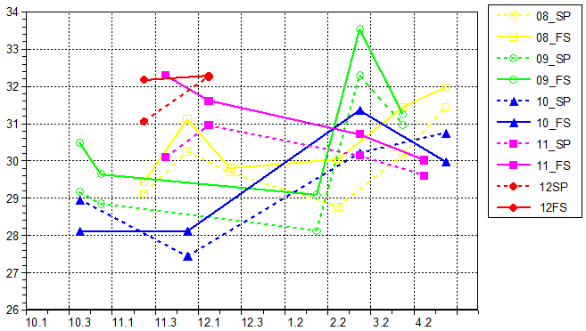りの部分が3A成功による+αと思われます。SPで女子に3Aが解禁されてから、はじめ